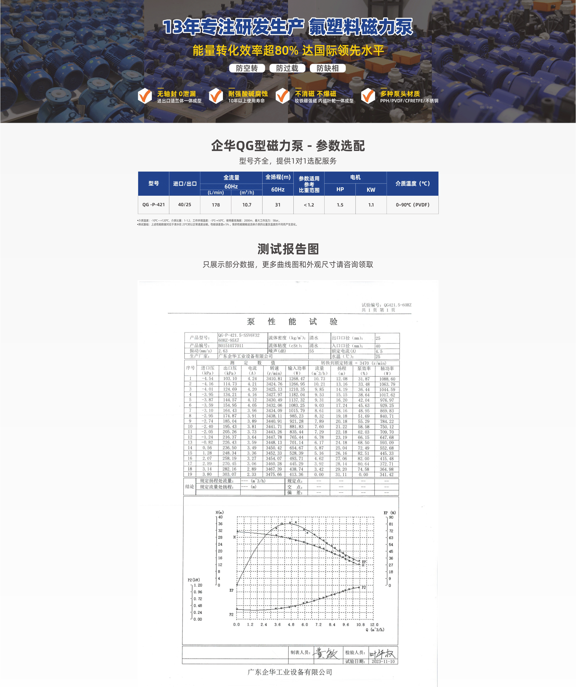 獨特的雙葉輪結構,泵效率超80%,達到或超過進口產品;耐強腐蝕,進出口法蘭一體成型,滴水不漏;流量大、振動小、噪音低、高效率、低能耗的選擇。